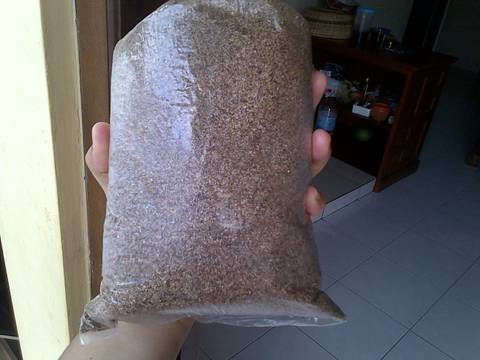 Ini adalah bahan pengental buburnya, cara bikinnya, beras dicuci, dikeringkan, kemudian disangrai bersama dengan kelapa parut. Sangrai sampe warna agak coklat, kemudian diblender halus, jadinya kayak serbuk gitu.